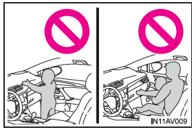 ● Non lasciare che gli occupanti del sedile anteriore tengano oggetti sulle ginocchia.