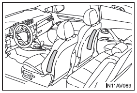 ● Non utilizzare accessori per il sedile che ricoprano le parti interessate dal gonfiaggio degli airbag SRS laterali per evitare che interferiscano con il gonfiaggio in caso di attivazione. Questi accessori potrebbero impedire agli airbag laterali di attivarsi correttamente, potrebbero disattivare il sistema o provocare il gonfiaggio accidentale degli airbag laterali, con lesioni gravi, anche letali, per le persone.