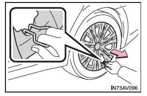 Rimuovere il copricerchio utilizzando il gancio per i copriruota.